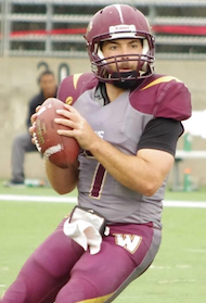 PHOTOS: (Top) Jason Fracassa rolls out during the 2009 Division I championship game at Ford Field. (Middle) Fracassa and fiancé Kelsey Torzy. (Below) Fracassa drops back to pass while playing for Walsh. (Middle and below photos courtesy of Jason Fracassa.)