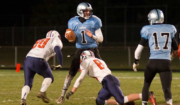 NorthPointe Christian has seemingly gained steam as it’s built its best season of a seven-year football history; the Mustangs have actually increased their scoring average during the playoffs four points per game to just more than 42. Senior quarterback Luke VanDyke (1,143 yards/15 TDs passing, 561/13 rushing) and senior running back Kenny Willekes (1,194 yards/15 TDs rushing) are responsible for much of that firepower. But St. Mary has eliminated two previously-undefeated teams the last two weeks and tripped up only against Lansing Catholic, in Week 9. Junior Justin Carrabino (1,268 yards, 12 TDs) is one of three backs who have run for at least 800 yards and 12 scores.