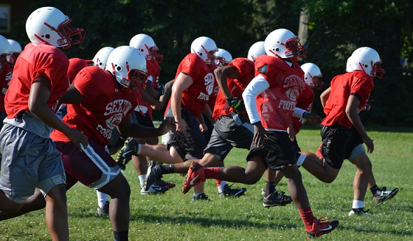 PHOTO: Lansing Sexton, practicing earlier this month, fell just a touchdown shy last season of reaching its first MHSAA Final.