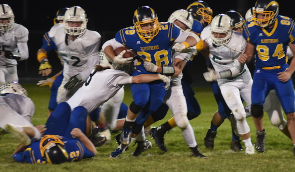 The Bluestreaks run an odd-front defense and an offense that so heavily relies on the running game that Walentowski said the old saying of “three yards and a cloud of dust” offense applies to this team in phrase only.