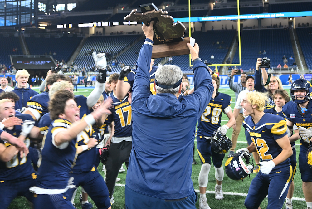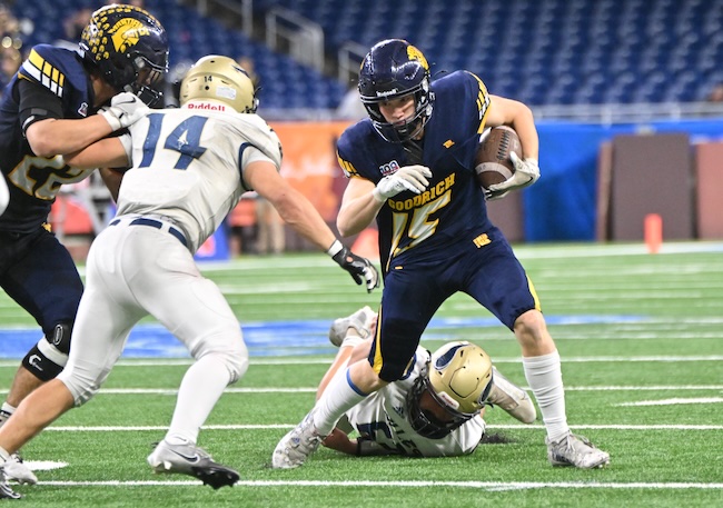 Reigning champion Goodrich has won 25 straight games and remains physically tough to take down with senior running back Jakoby Lagat (1,973 yards/27 TDs) one of two 1,000-yard rushers this fall. Divine Child has held four of its last five opponents to single digits and opened this fall with five shutouts over its first six games. Senior safety/running back Marcello Vitti is among leaders on both sides of the ball.