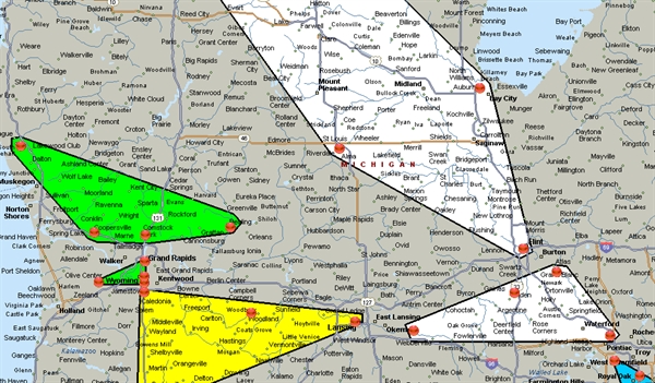 PHOTOS: (Top) The Division 4 bracket mapped out on the Lower Peninsula shows how I-75 served as a guide for putting Escanaba in a District that includes Flint Powers Catholic.