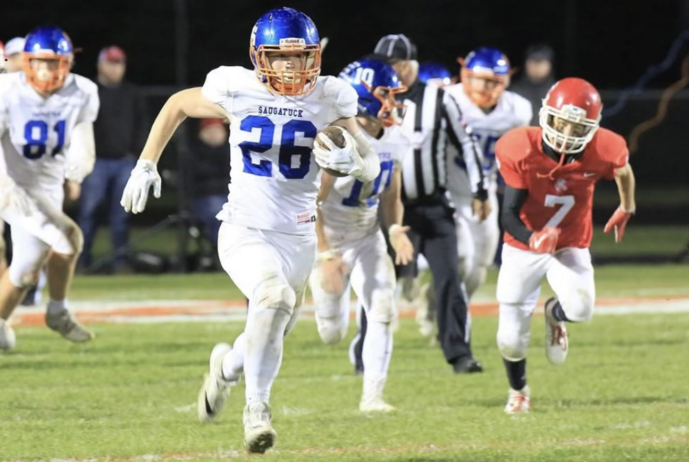 Saugatuck coach Bill Dunn is the only coach to have two players on the list, including his son Blake, on Sept. 25, 2015, against Decatur.