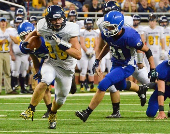 PHOTOS: (Top) Pewamo-Westphalia's Jared Smith came into this season with single-season rushing and touchdown records. (Middle) Smith works for yardage against Ishpeming during last season's Division 7 Final. (Click to see more from HighSchoolSportsScene.com.)