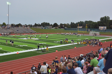 The schools reopened the stadium Friday for a doubleheader. Sacred Heart fell to rival Beal City in the opener, and Mount Pleasant then defeated Midland Dow to finish a night that saw more than 5,000 fans pass through the new gates and witness the official debut of stunning two-tone green turf that served as the main focus of a renovation that has only just begun.