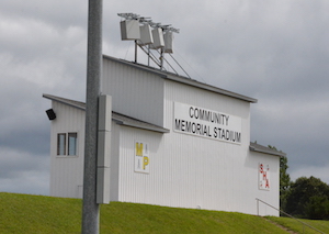 Community Memorial Stadium opened in 1965 as the shared home of the Mount Pleasant High and Sacred Heart football and track and field programs. Prior to its construction, the programs had a variety of homes – CMU’s Alumni Field for the Oilers and at times the Irish, who also played at Fancher Field and at Island Park going back to at least the mid 1930s.