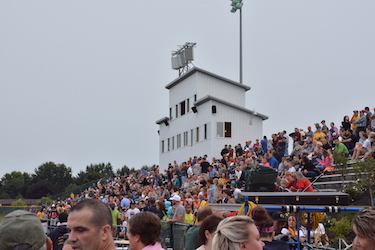 More than 5,000 fans filled the stadium for Friday's doubleheader, these mostly supporters of Mount Pleasant High after the Sacred Heart game against Beal City had ended.
