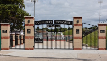 A new gate at the north entrance welcomes fans to Mount Pleasant's Community Memorial Stadium. The gate is anchored by pillars highlighting some of the project's largest donors.