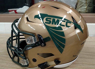 When Kipf played at SMCC, the helmets were green with decals of yellow birds on them. Lately, the helmets have been without decals, but the birds have returned this year.
