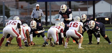 PHOTOS: (Top) Lincoln Park’s Elijah Cross (23) breaks away from a would-be tackler during his team’s Homecoming game against Southgate Anderson. (Middle) The Railsplitters prepare to run a play during that 25-13 loss. (Photos courtesy of Lynsey Schweizer.)