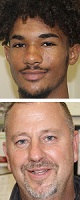 PHOTOS (Top) First-year Portage Northern varsity football coach Kurt Twichell talks with his team this season. (2) Portage Northern senior Xavier Thomas, top, and athletic director Chris Riker. (3) Twichell, left, works with his players during a practice this fall. (4) Twichell addresses the Huskies after a game. (Action photos by Jason Altwies; head shots by Pam Shebest.)