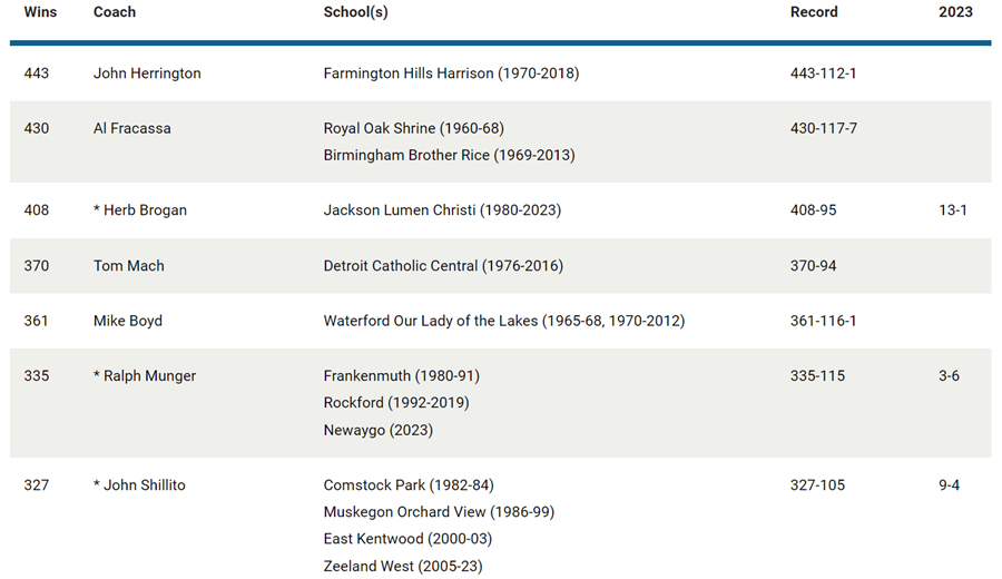 Michigan high school football is the better for Shillito sticking it out. Two schools later, Shillito finds himself as the state's third winningest active coach and seventh overall with a 333-106 mark over 41 seasons.