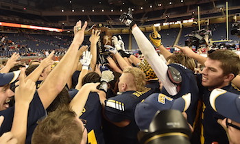 Orchard Lake St. Mary’s repeated as Division 2 champion following quarterback Jabin Gonzales (304 yards/4 TDs passing, 102 yards rushing) but also thanks to a stellar defensive effort against the Dreadnaughts’ record-setting offensive attack. The Eaglets held Dexter to just 266 total yards, and only 69 during the second half after taking a 24-14 lead into the break.