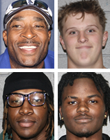 PHOTOS (Top) Kalamazoo Loy Norrix’s David Jones (6) sprints down the sideline during a Week 6 win over Battle Creek Lakeview. (2) Clockwise from top left: Knights coach Lorenzo Robertson, Will Dominianni, Rashad Waller and Jones. (3) Dominianni (64) helps protect his backfield against Grand Rapids Ottawa Hills. (4) Waller gets to the edge against St. Joseph. (Action photos by Steve Andrie; headshots by Pam Shebest.)