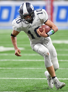 The Crusaders ran for 279 yards on 50 carries total, with junior quarterback Isaac TeSlaa rushing for 97 yards and two touchdowns and also competing 3 of 4 passes for 70 yards and a score to senior TJ VanKoevering. Junior Hayden Large and seniors Max Buikema and Mason Odehal also ran for touchdowns.