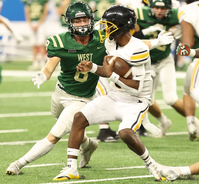 “I thought I had the film on fast forward, because he’s got some speed,” Patrick said. “Speed is speed. That kid is fast in every league. He outran some angles today and proved he’s a really good football player. I would like to see kids like him get more chances at the next level. That kid’s a ballplayer. I’m glad he was able to get that exposure today on a really big stage, and hopefully he can parlay that into a college scholarship.”