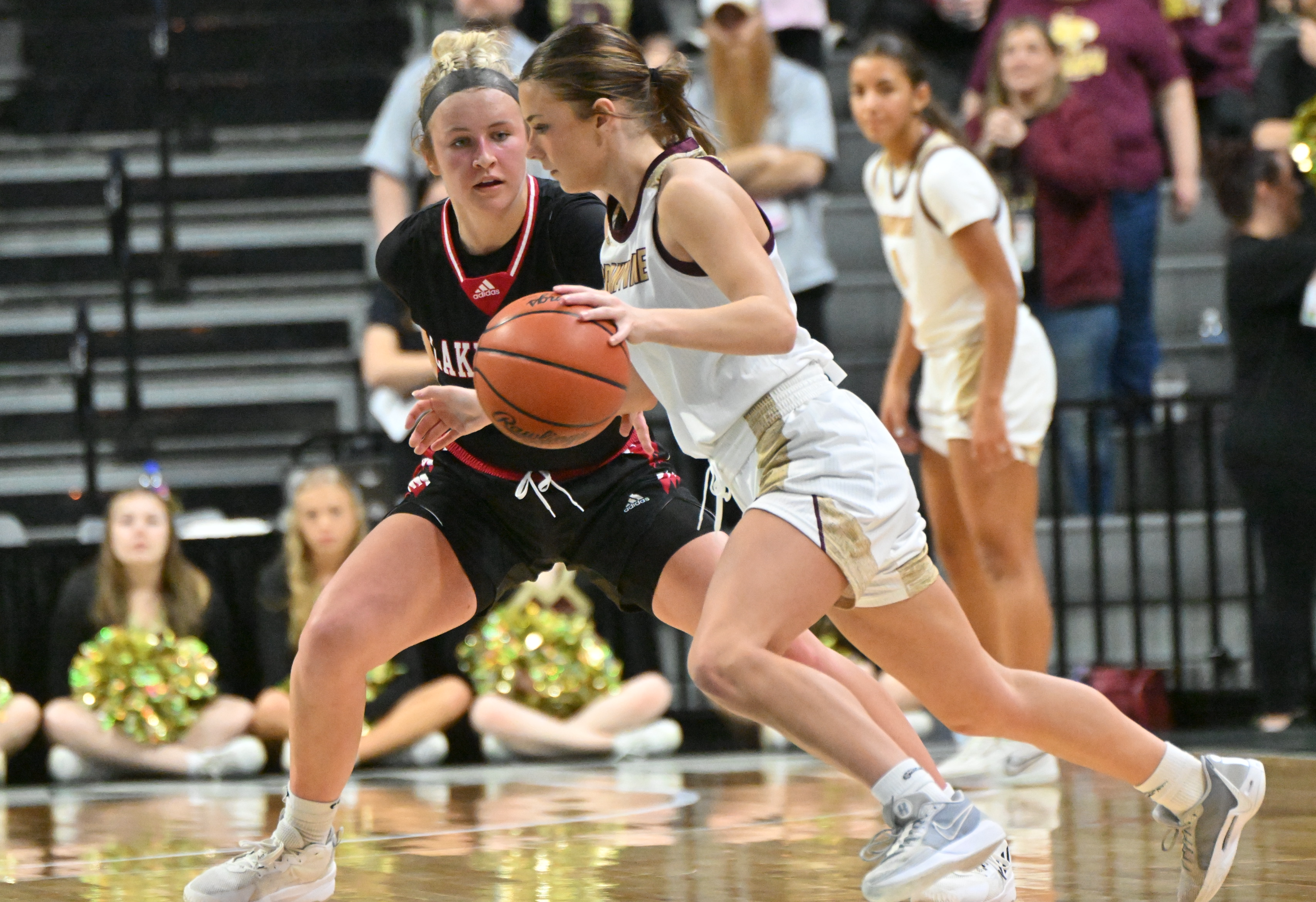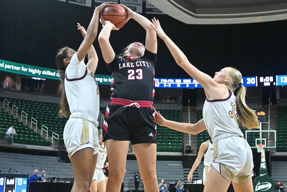 Hood said he was up until 5 a.m. Wednesday scouting what was going to be a taller Lake City opponent for Thursday’s Division 3 Semifinal. He decided to come up with something on the fly to try and slow down the Trojans’ frontcourt duo of seniors MacKenzie Bisballe and Alison Bisballe, the tallest players on the floor.
