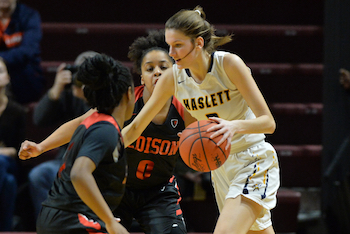 “Typically we’re a really good 3-point shooting team – we actually set a school record this year for the most 3-point field goals made – and I thought we got good looks. But with their length and athleticism they speed you up and those looks close pretty quickly,” Haslett coach Ross Baker said. “Maybe if we hit a couple of those early, we could’ve built a little more momentum. But … anything we’ve asked these girls to do, they do it 110 percent. I thought we handled their pressure. They’re really long. I thought we were really competitive on the glass – I think in the first half we were about even, but the second half we ran out of steam.”