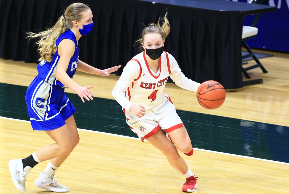 Strom and Djerf scored the first six points of the third quarter to give Calumet a 28-24 lead, but Kent City’s offense, led by Geers, responded with a 20-9 run to take a 44-37 lead on a triple and floater by Kenzie Bowers.