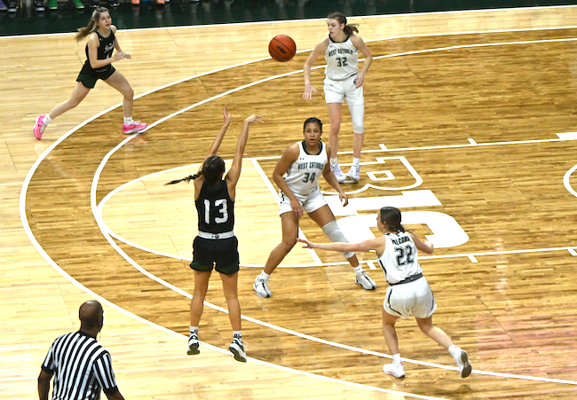 Junior Elisha Dykstra scored a team-high nine points for West Catholic, while senior Reese Polega had five points, seven rebounds and three steals.