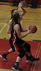 PHOTOS: (Top) Bellaire's Lexi Niepoth (13) blocks a passing lane during a game this season. (Middle) Niepoth makes a move to the basket. (Photos courtesy of the Bellaire girls basketball program.)