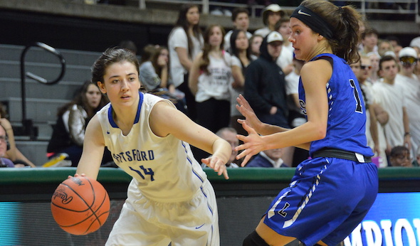A 3-pointer by senior Laura Smith with 1:47 to play in the second quarter pushed Pittsford’s lead to 10 – and it never dropped back to single digits.