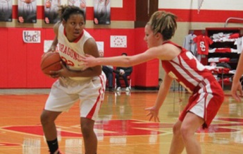 PHOTOS: (Top) Swartz Creek's Jacara Thompson prepares to shoot a free throw. (Middle) Thompson, back this season after multiple knee surgeries during her career, looks to get past a defender. (Photos courtesy of the Swartz Creek girls basketball program.)