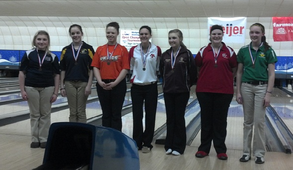 With sister and 2010 champion Kara Richard cheering her on, Jordan finished first in qualifying and then edged reigning champion Lindsay Ploof of Flint Kearsley 425-413 in the Semifinal. Richard defeated Flint Northwestern’s Alonna Tipton 469-382 in the championship match – winning their first game by 15 and second by just two pins.