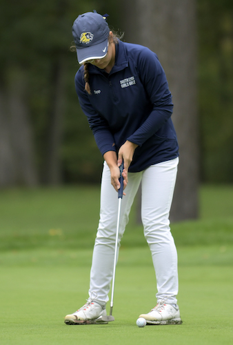 Following Leinwand, a sophomore, in the individual standings was Byron Center sophomore Macie Elzinga, who cut two strokes from her Friday score to finish the weekend at 152. Her team was tied for fourth after the first day and cut eight strokes during the second to finish at 700.