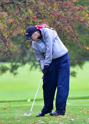 PHOTOS: (Top) Birmingham Seaholm’s Jordan Michalak celebrates after chipping in for a birdie. (Middle) Okemos’ Elle Nichols finished first individually for the third straight season, tying at MHSAA record. (Click to see more from High School Sports Scene.)