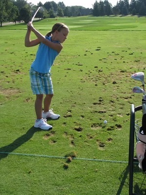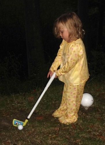 PHOTOS (Top) Grand Blanc’s Kate Brody, here following through on a putt, has posted a tournament personal best 62 this season. (Middle and below) Brody, as a toddler and a few years older, took to the game at a young age and made it her main game during junior high. (Photos courtesy of the Brody family.)