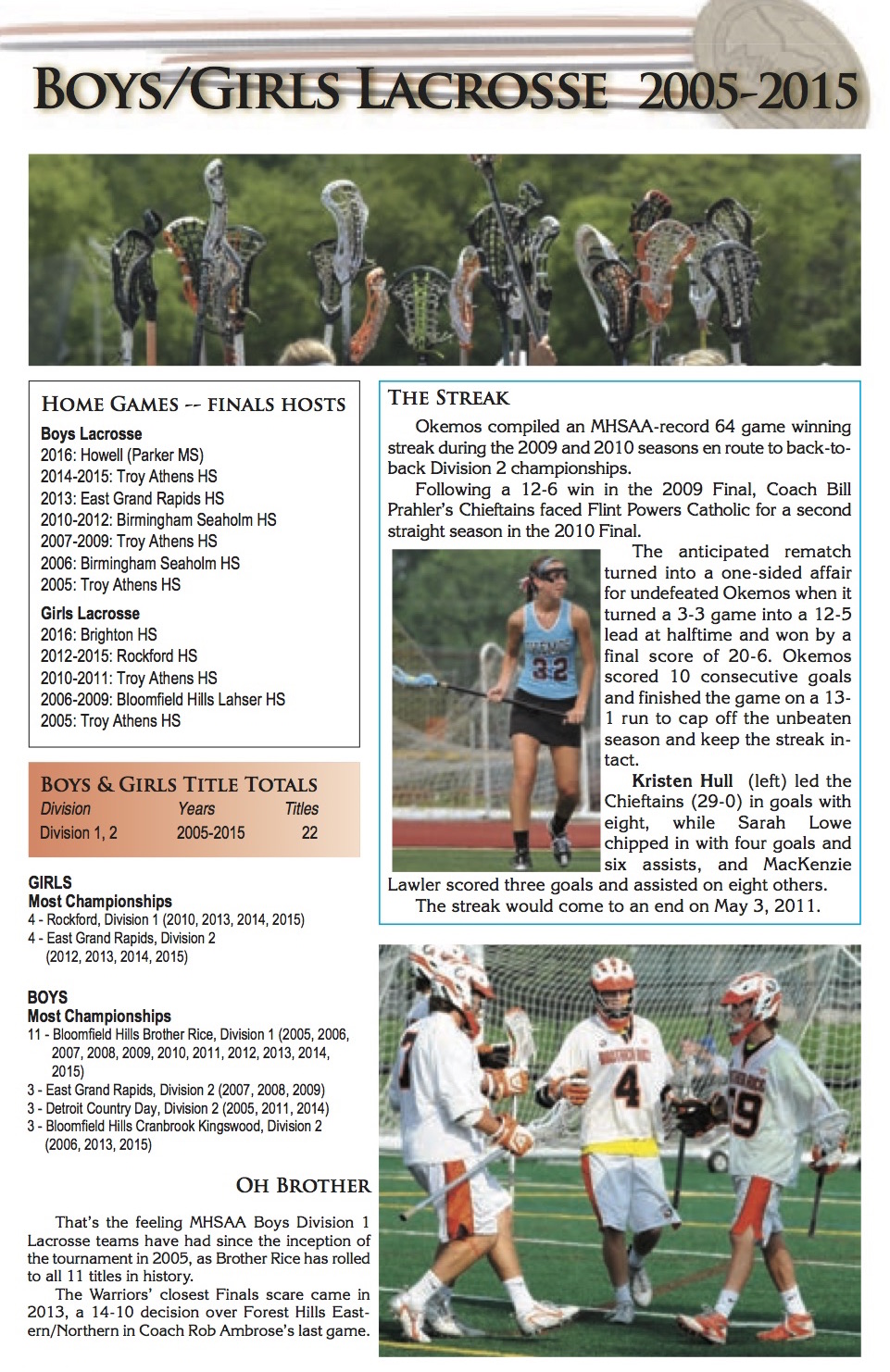 The MHSAA Girls and Boys Lacrosse Finals honored their 12th series of champions last month as four of the most successful programs in the sports' young histories added to their respective legacies.