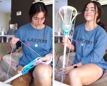 Trepins’ discovery led to starting a business and online store last November – LaxZoo. She sells T-shirts and other lacrosse items to pay for materials to restring lacrosse sticks that people donate. She also repairs sticks of teammates and other players, and the profits from her small fees go to string material for more donated sticks – and in the short term some of the profits have gone to COVID-19 relief efforts.