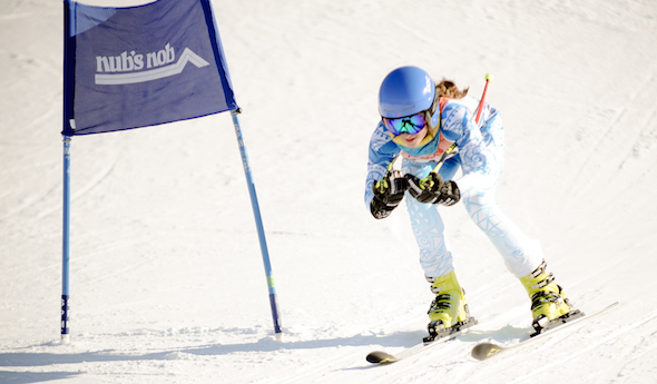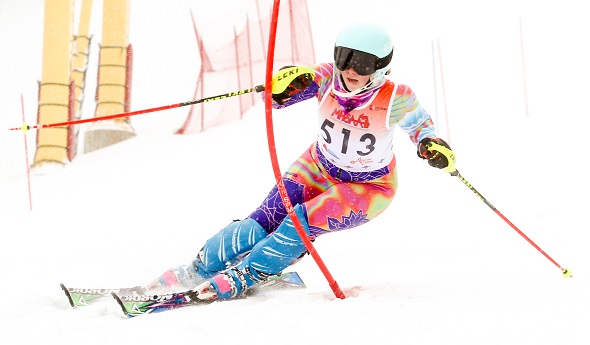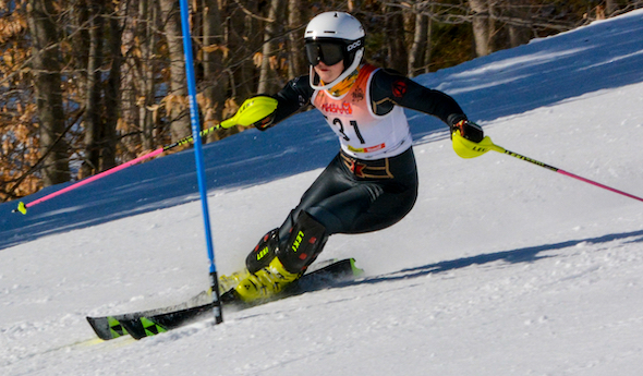Traverse City Central’s Quinn Gerber finishes a giant slalom run Monday at Nub’s Nob.