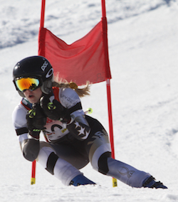 Gaylord sophomore Reagan Olli was the meet’s star. Skiing as an individual qualifier and out of the third flight, she led the GS after the first run but finished second overall as she was overtaken by one of her frequent training partners, McAlindon, who posted the fastest girls run of the day.