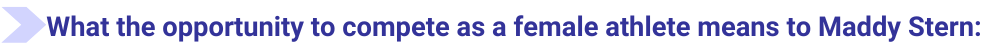 "Competing as a female athlete means I can accomplish many things throughout my life, in my sport and through my upcoming career. It allows me to push myself on the ski hill to always be faster than the boys, as Mikaela Shiffrin says. When I finish a race run, and right as my time is announced, I feel proud of the skier I've shaped into as my skills are constantly challenged on each race run with the new courses and new obstacles to overcome.