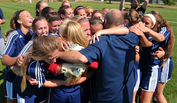 Junior midfielder Mickey Hostetler received hers from coach Jeff Corstange, as did junior defender Hayley Buckhout, senior goalkeeper Maggie Harma and sophomore midfielder Riley Wisser. Senior captains Tabitha Boze and Rachel Fouts savored theirs as did the rest of the victorious Blue Devils, who defeated Bloomfield Hills Marian 2-1 in the title game for the second straight season to finish 24-1-1.