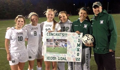 On Tuesday, Timko became the 41st player in MHSAA girls soccer history to score 100 goals, netting three in Notre Dame Prep's 6-0 win over Madison Heights Bishop Foley.