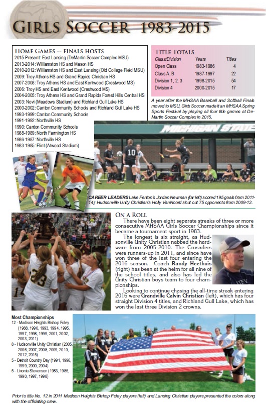 Girls soccer has experienced its share of powerhouse programs over the last three decades, with teams winning three or more consecutive MHSAA championships eight times.