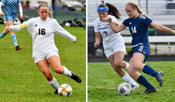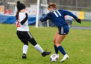 PHOTOS: (Top) Kendal Hoppa, left, and Reyna Johnson are among defensive standouts for top-ranked North Muskegon. (Middle) Ayla Pitts is another top defender for the Norsemen, and a captain with Hoppa. (Photos by Tami Pitts.)