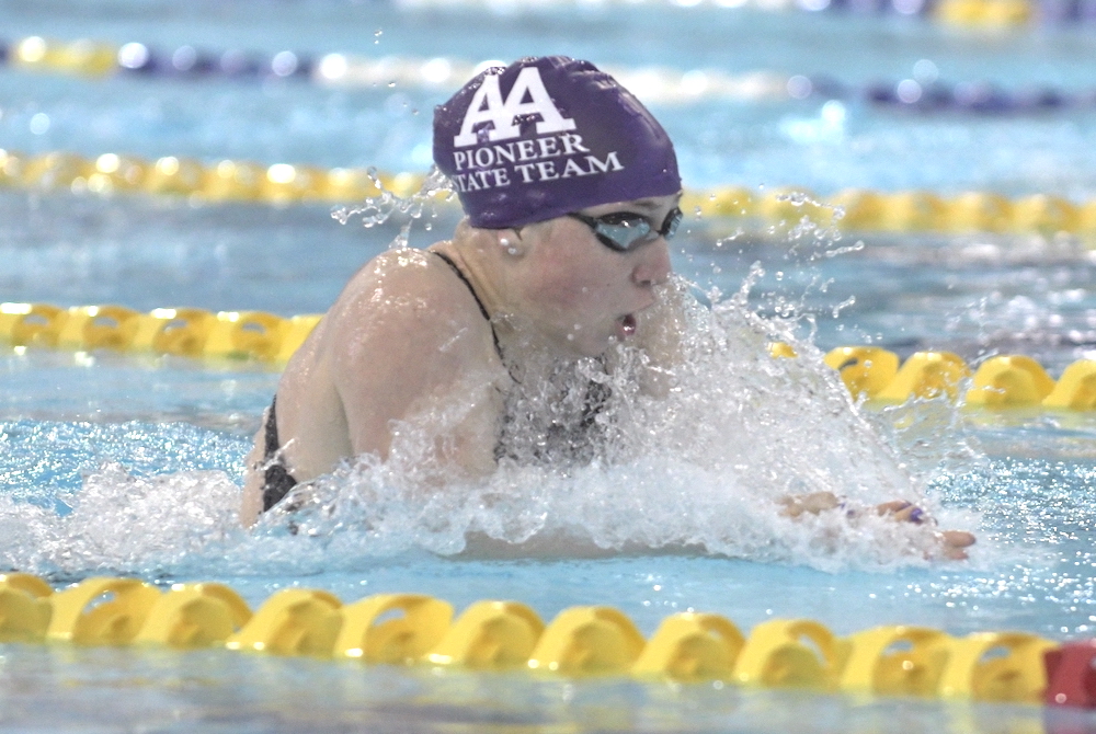 Senior Lily Cramer led the way for Pioneer with a first-place finish in the 200-yard free (1:48.95), plus she swam legs on winning 200 free relay and 400 free relay teams and took second in the 100 breaststroke. Sophomore Stella Chapman won the 200 IM (2:01.98), swam legs on first-place 200 medley relay and 400 relay teams, and placed second in the 100 backstroke.