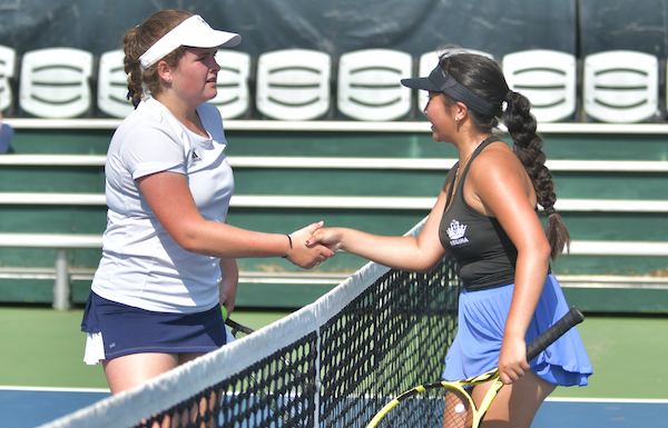 At No. 1, Academy of the Sacred Heart’s third seeds Jade Horcoff and Kayla Nafso defeated Greenhills top seeds Sophie Chen and Lauren Ye 7-5, 7-6(2). At No. 3, Academy of the Sacred Heart’s top seeds Alana Hindo and Presley Krywko defeated second seeds Meera Pandey and Meera Tewari, from Greenhills, 6-2, 7-6(3).