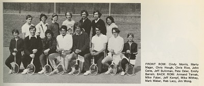 The girls, Cindy and Emily, had met at a tennis club when they were 11 or 12. Both were pretty good players who had done well at tennis tournaments before heading off to Huron High School. But there was concern that the girls wouldn’t have the chance to play truly competitive tennis while in high school. You see, like most public schools of the time, Huron had only one varsity tennis team, and that was filled with boys.