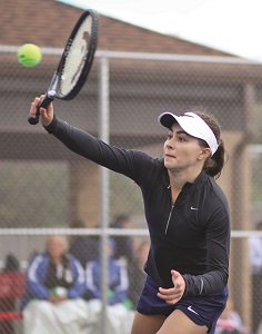 PHOTOS: (Top) Munising's Marissa Ackerman returns a volley during a No. 1 singles match Wednesday at the U.P. Division 2 Finals. (Middle) Westwood's Karlie Kargela returns a shot at No. 1 doubles. (Photos by Rachel Oakley.)