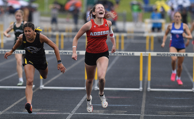 Another individual standout was Addison junior Molly Brown. She repeated in the 100 hurdles in a time of 15.22, and then won the 300 hurdles in a time of 45.07.