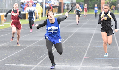 “All of our handoffs were good,” said freshman Emily Coveyou, who placed second in the 400 (1:04.75) and third in the 200 (27.97). “We’re just happy we won the last race. Unfortunately, I false started in the 100. But this kind of takes the sting out of that.”