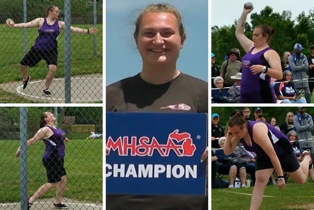 She owns three MHSAA Finals titles: the discus and shot last year and the shot this year at the MHSAA Lower Peninsula Division 4 Track & Field Championships.