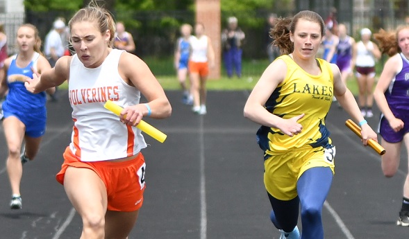 The Lakes took five firsts including wins in the 400 meter and 1,600-meter relays. Mariah Willmer won the 800 run. Jamie Hendrickson won the high jump, and Camaryn Crouch won the pole vault.