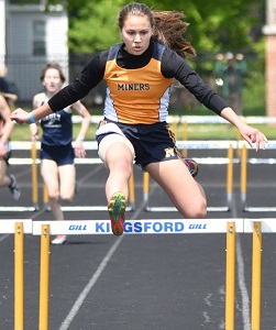 Kingsford senior Olivia Allen won the 400 in a school-record 58.93, added firsts in the 100 (12.93) and 200 (26.47) and was runner-up in long jump (15-9).