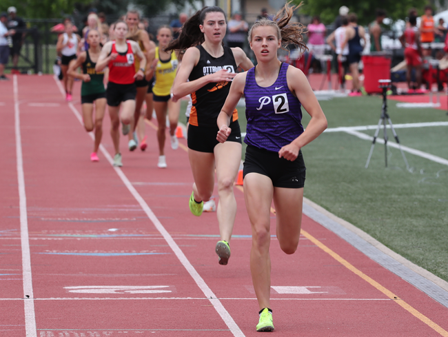Rachel Forsyth of Ann Arbor Pioneer won the 1,600 (4:38.28) and 3,200 (10:15.57) to cap an outstanding four-year career. A two-time cross country Finals champ, Forsyth overcame illness to win the 1,600 a year ago. She was coming off a trip to the Trial of Miles meet in New York a couple of weeks ago, but said the Finals featured virtually no mental letdown.